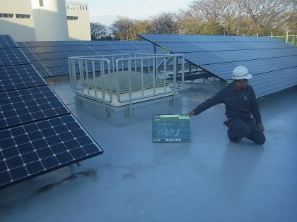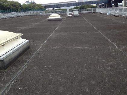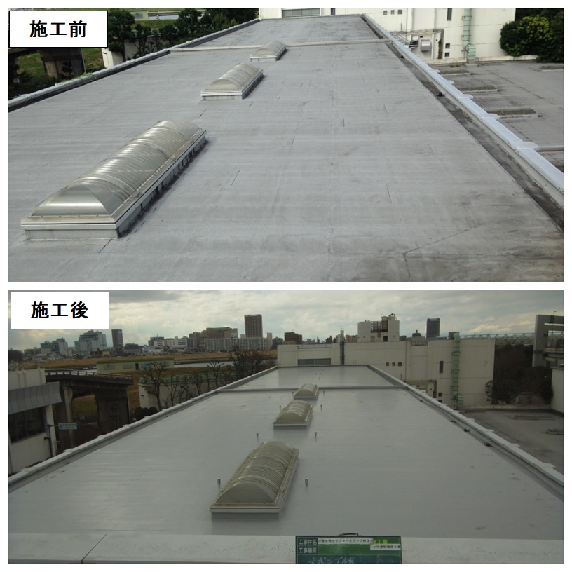 施工詳細 東京都下水道局小菅水再生センター主ポンプ等ほか1か所建物補修工事 建屋2棟、合計約2,000㎡の屋上防水改修工事をおこないました。 葛飾区 / 工期: 約4ヵ月 / 2014年 建屋2棟、合計約2,000㎡の屋上防水改修工事をおこないました。 別の棟 施工前 施工完了 防水改修後、太陽光パネルを取付ける仕様となっており、 三菱電機(株)様へバトンタッチしました。