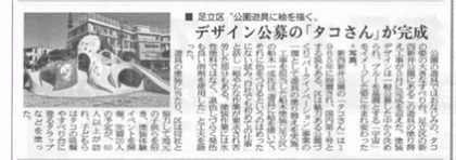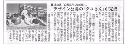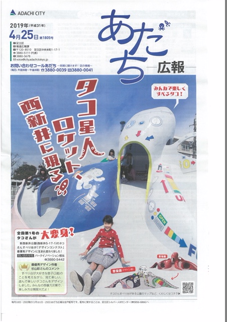 一般公募「あだちのタコさん すべり台デザインコンテスト」の中から選ばれた作品に、地元の子供たちと一緒に塗り替えました。