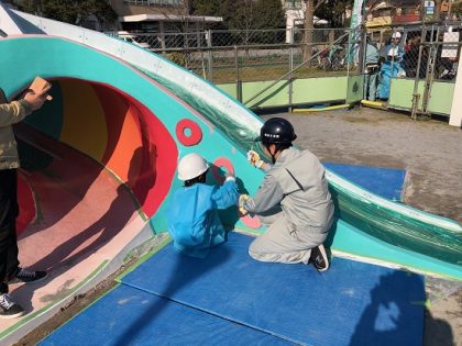 足立区の事業で、タコすべり台の塗り替え工事を行いました。